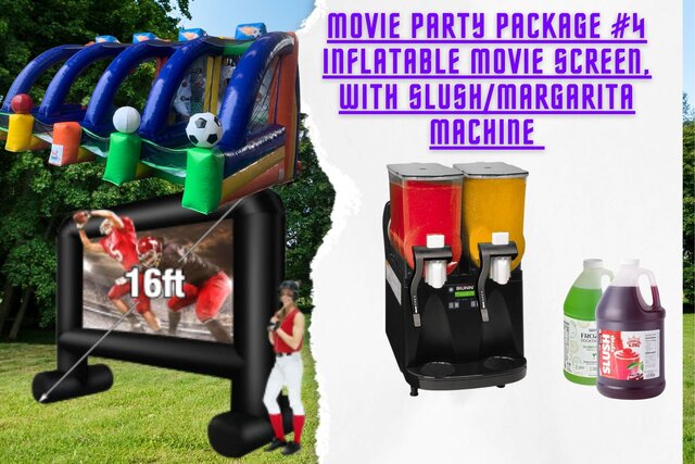 Whether you're hosting a birthday party, a team celebration, or just a fun gathering with friends and family, our Football Party Package with an inflatable movie screen, 4-lane ball toss game and the slush/margarita machine is the ultimate choice. Get ready for an unforgettable experience that will leave everyone talking about your event for years to come. Book now and let the games begin!